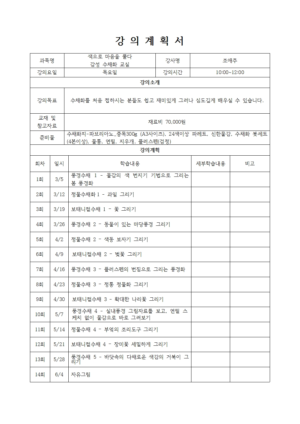 ▶강 좌 명 : 색으로 마음을 풀다 감성 수채화 교실