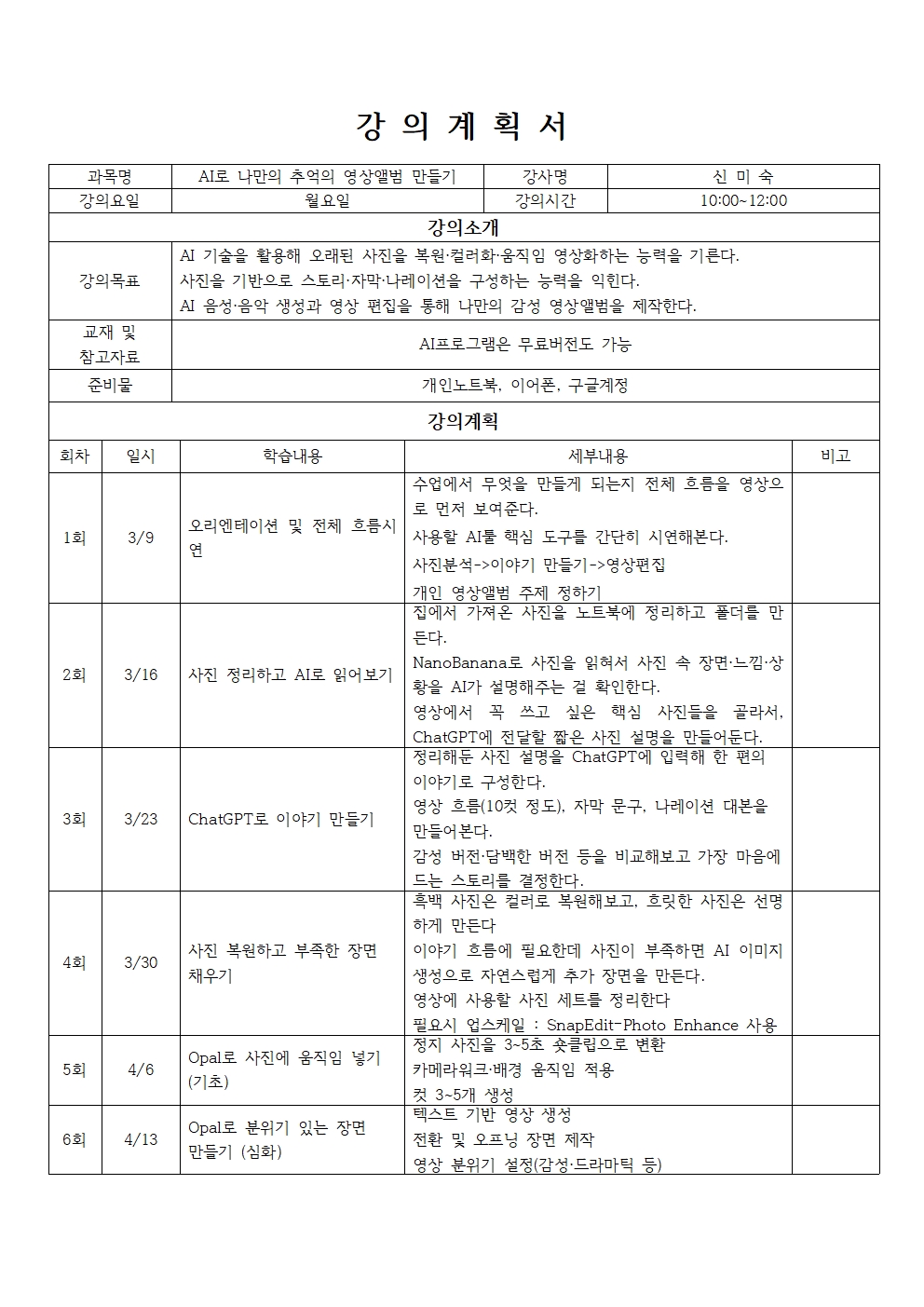▶강 좌 명 : AI로 나만의 추억 영상앨범 만들기