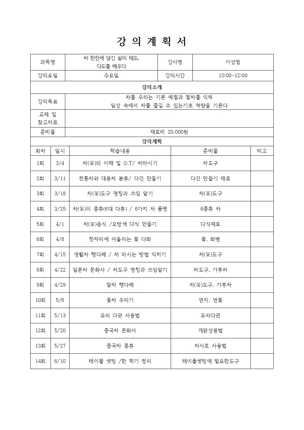▶수 강 료 : 6만원 / 재료비 2만원