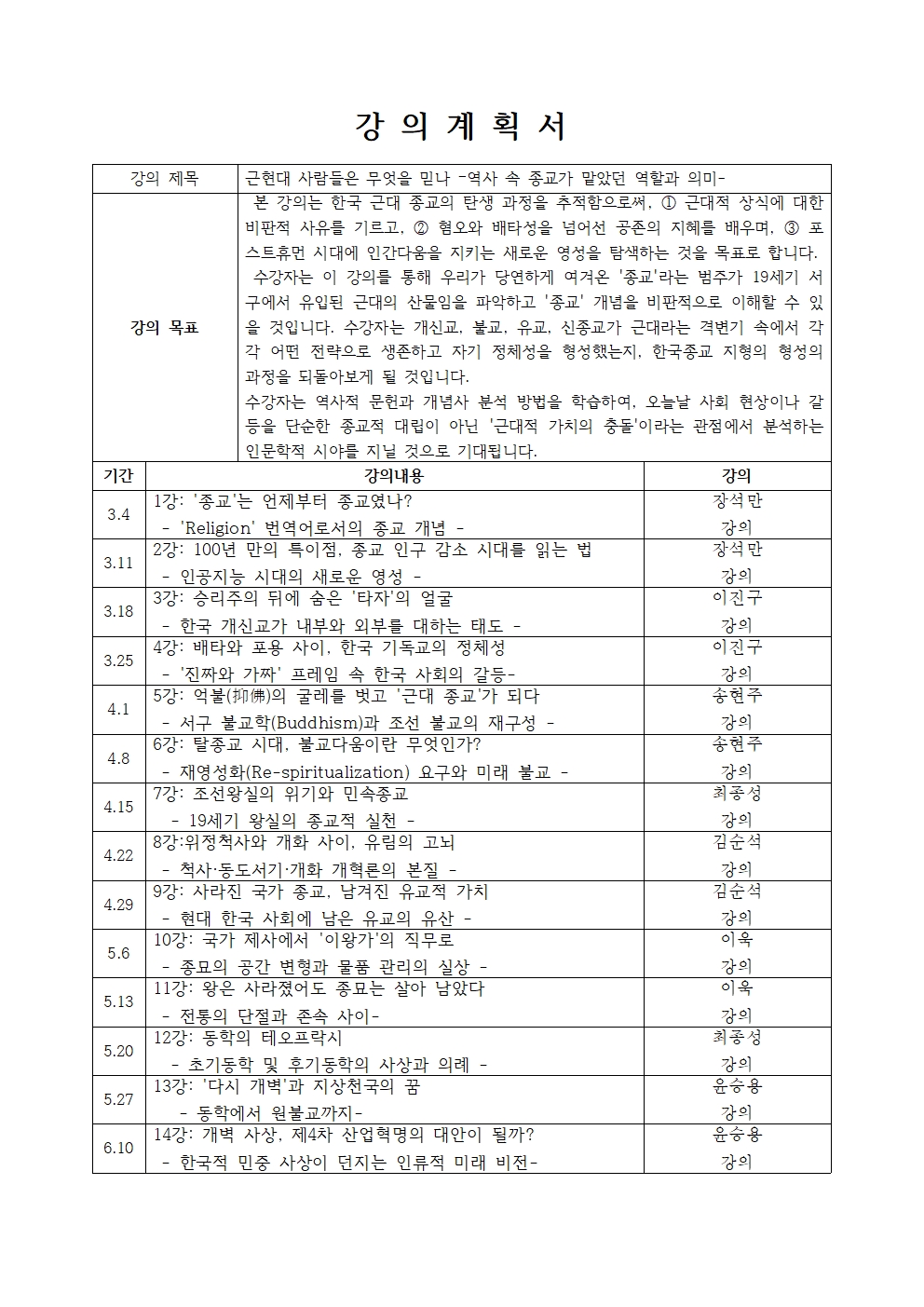 * 강의계획은 사정에 따라 바뀔 수 있음