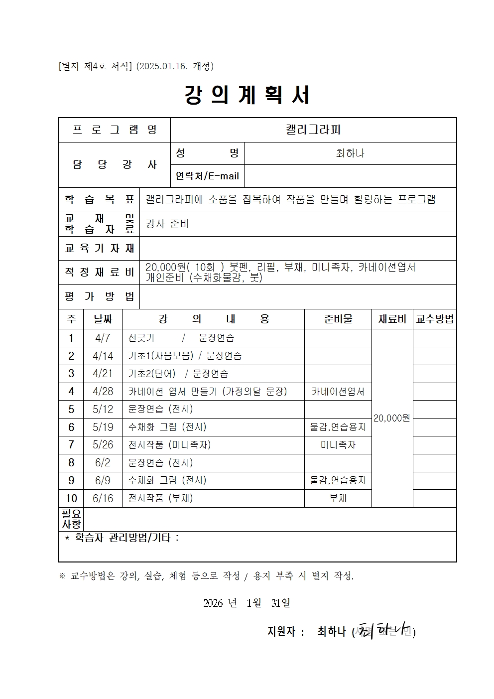 ▼ 캘리그라피 강의계획서_참고자료