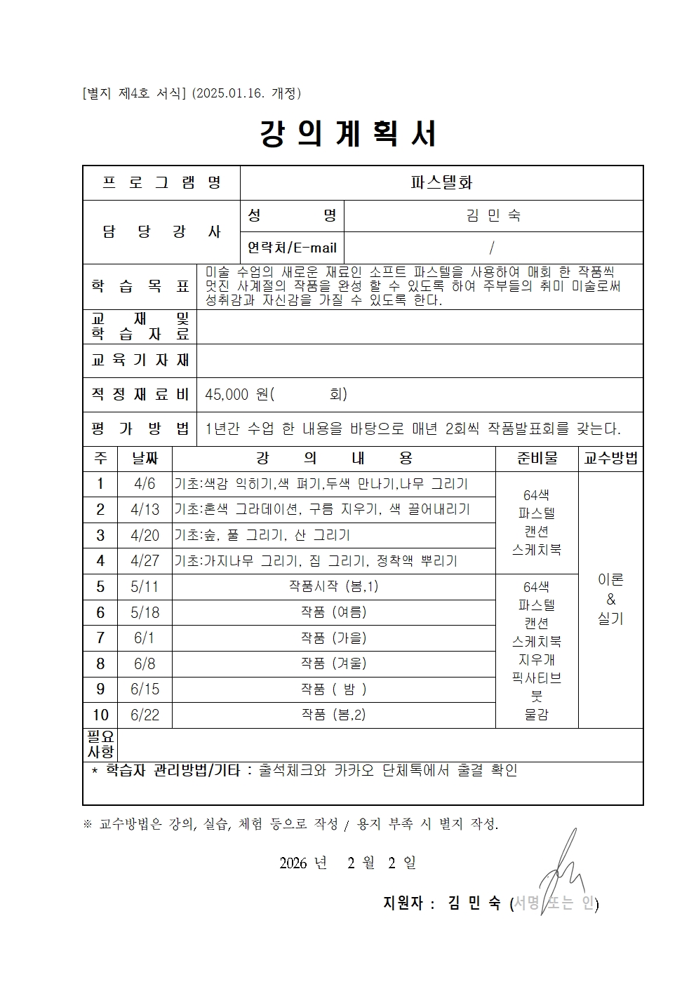 ▼ 파스텔화 강의계획서_참고자료