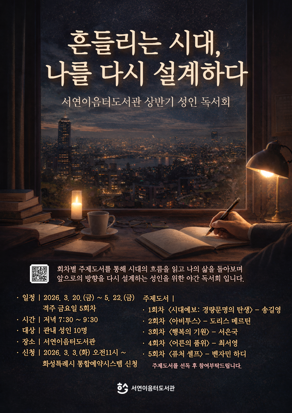 [서연이음터도서관] 2026년 상반기 성인 독서회 「흔들리는 시대, 나를 다시 설계하다」