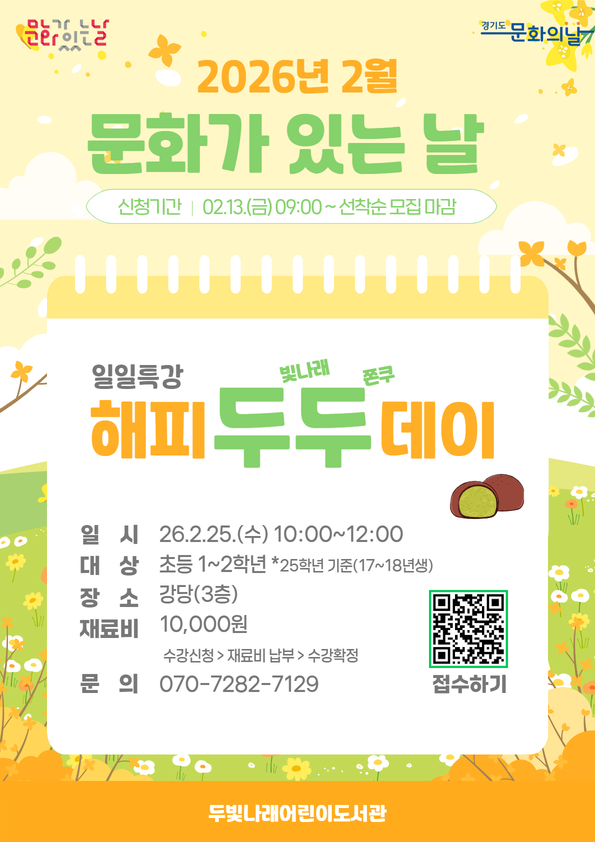 < 두빛나래어린이도서관 2026년 화성시 문화의 날 2월 특강 운영 안내 >
