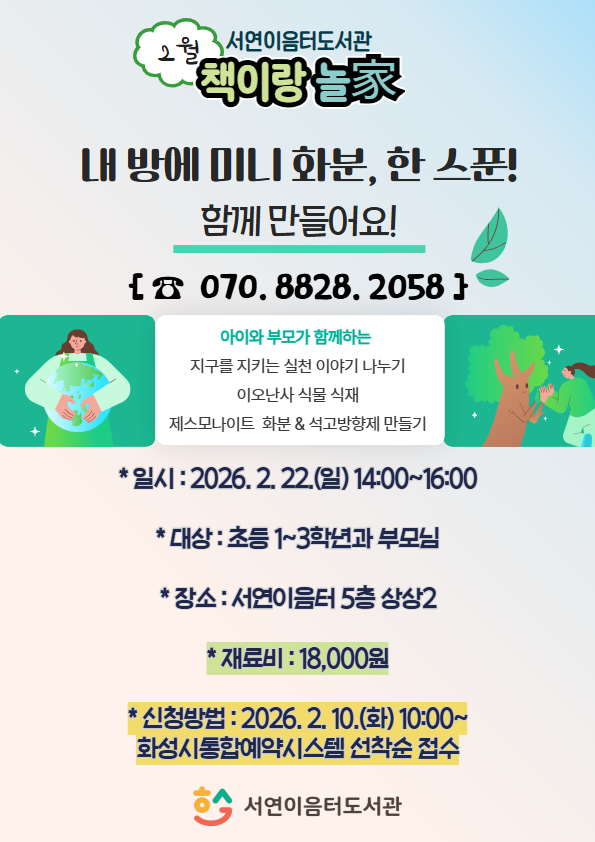 [서연이음터도서관] 2월 책이랑 놀家 <내 방에 미니 화분, 한 스푼!>