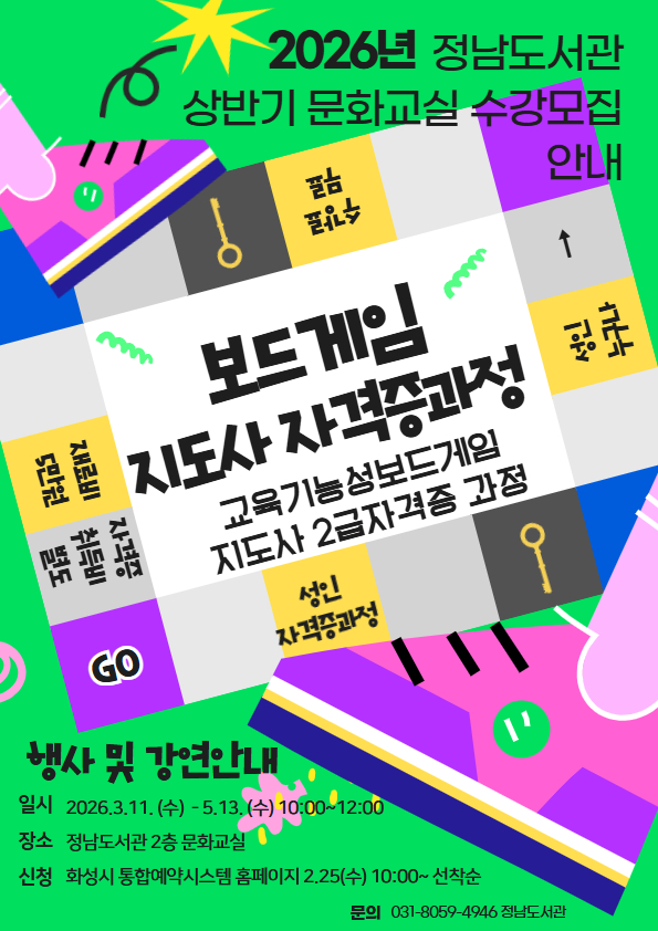 [정남도서관] 성인 문화교실 <보드게임지도사 자격증과정>