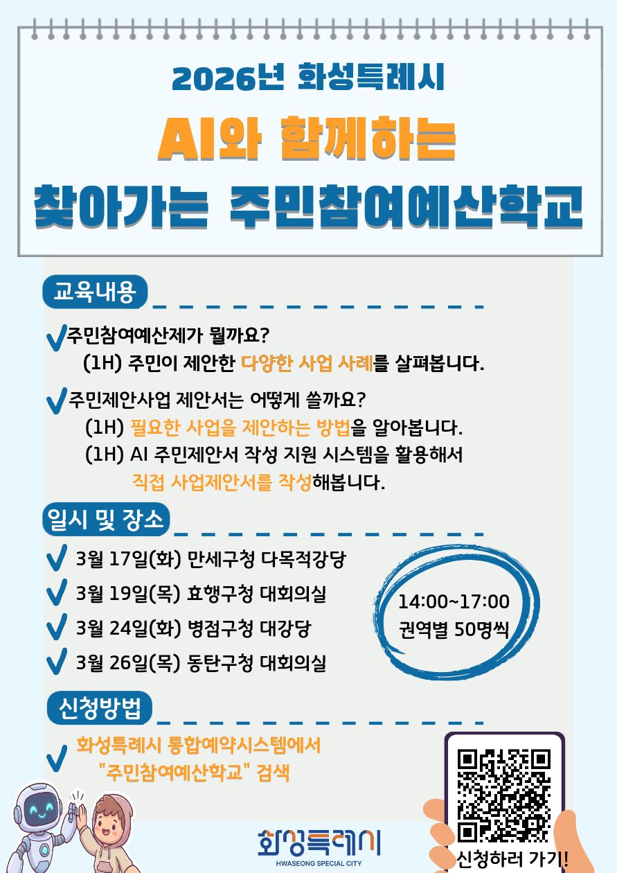 ○ 교육대상: 주민참여예산사업에 관심 있는 화성시민 등 50명