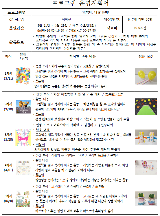 2026 상반기 문화교실<그림책아 나랑 놀자-6세반>