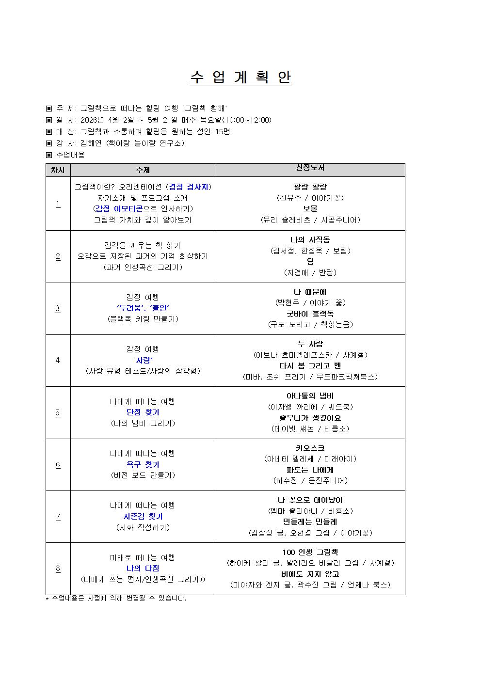 [태안도서관 상반기 문화교실] 그림책 항해(성인)