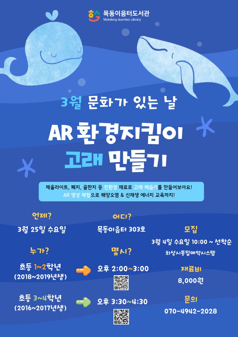 [목동이음터도서관 - 3월 문화가 있는 날] (초등1~2) [AR 환경지킴이 고래 만들기]