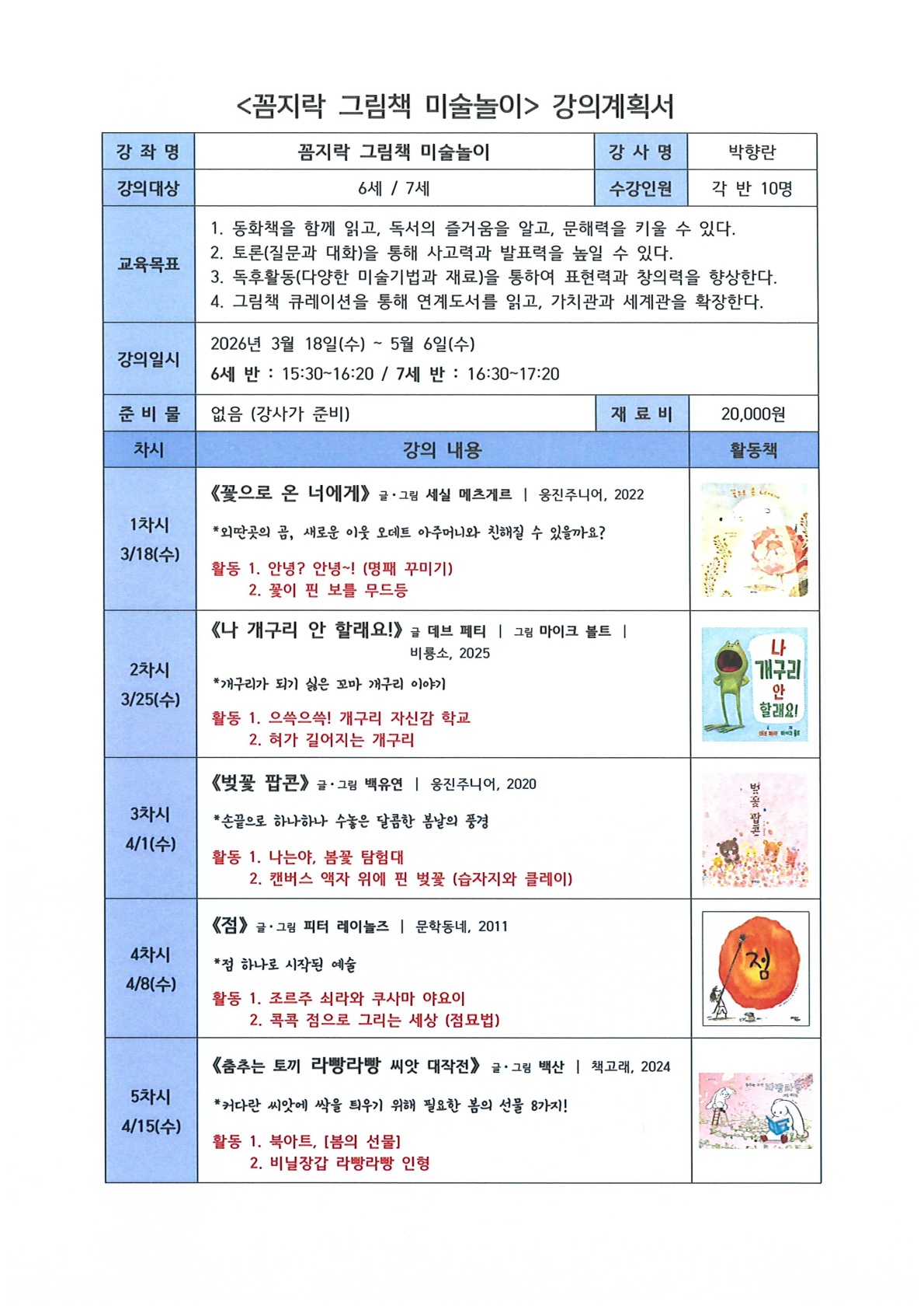 ○ 강좌 운영일 : 2026. 3. 18 ~ 5. 6 (수) 16:30~17:20(7세반)