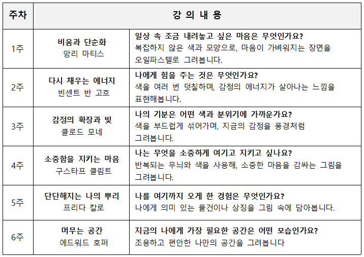 [중앙] 2026 상반기 문화교실 <그림에 머문 마음 한 조각 : 명화에서 출발하는 오일파스텔>(성인)