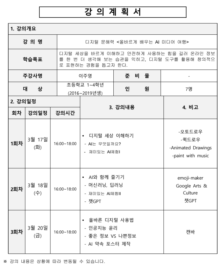 - 수업 운영사진이 결과보고에 사용될 수 있습니다.
