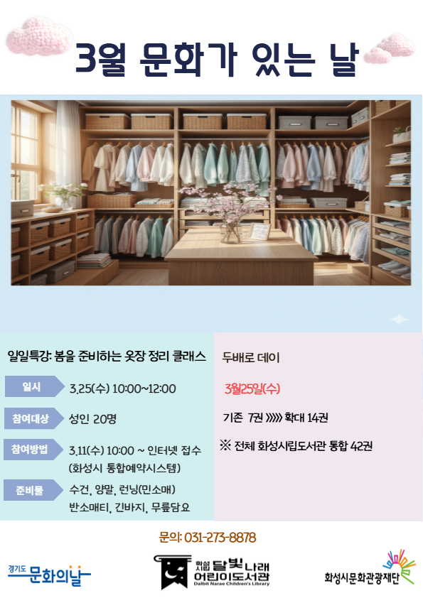 [달빛나래어린이도서관] 3월 문화가 있는 날 일일특강 - 봄을 준비하는 옷장 정리 클래스