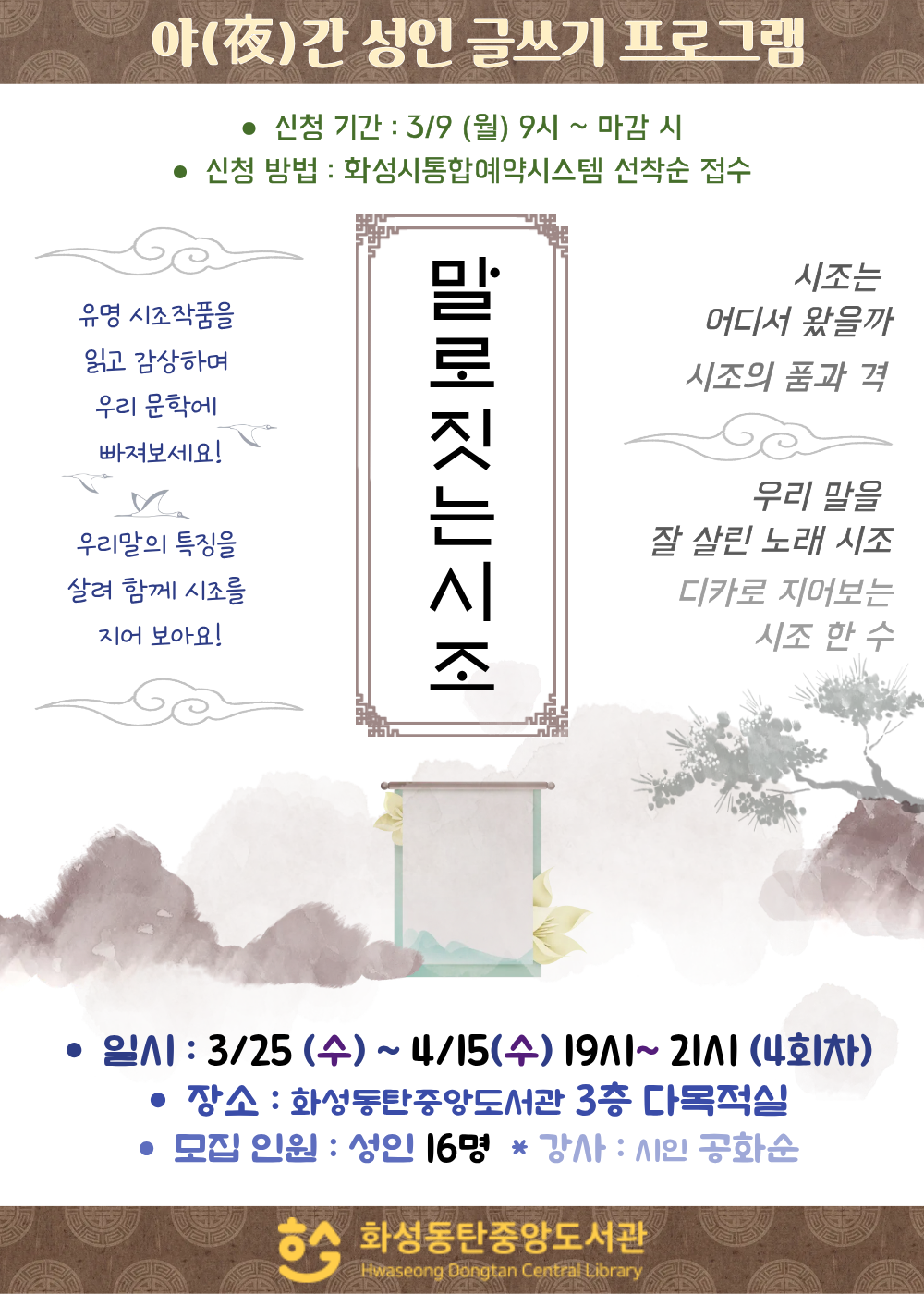 [중앙] 3월 말~4월 중순 야간 <말로 짓는 시조> (성인)