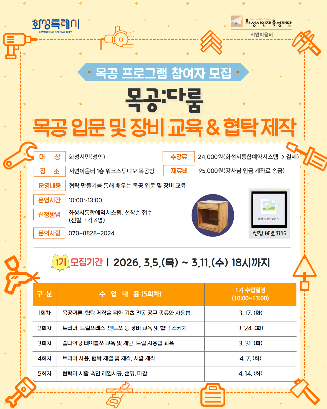 ▣ 수업내용 : 2026년 목공:다룸 1기 모집