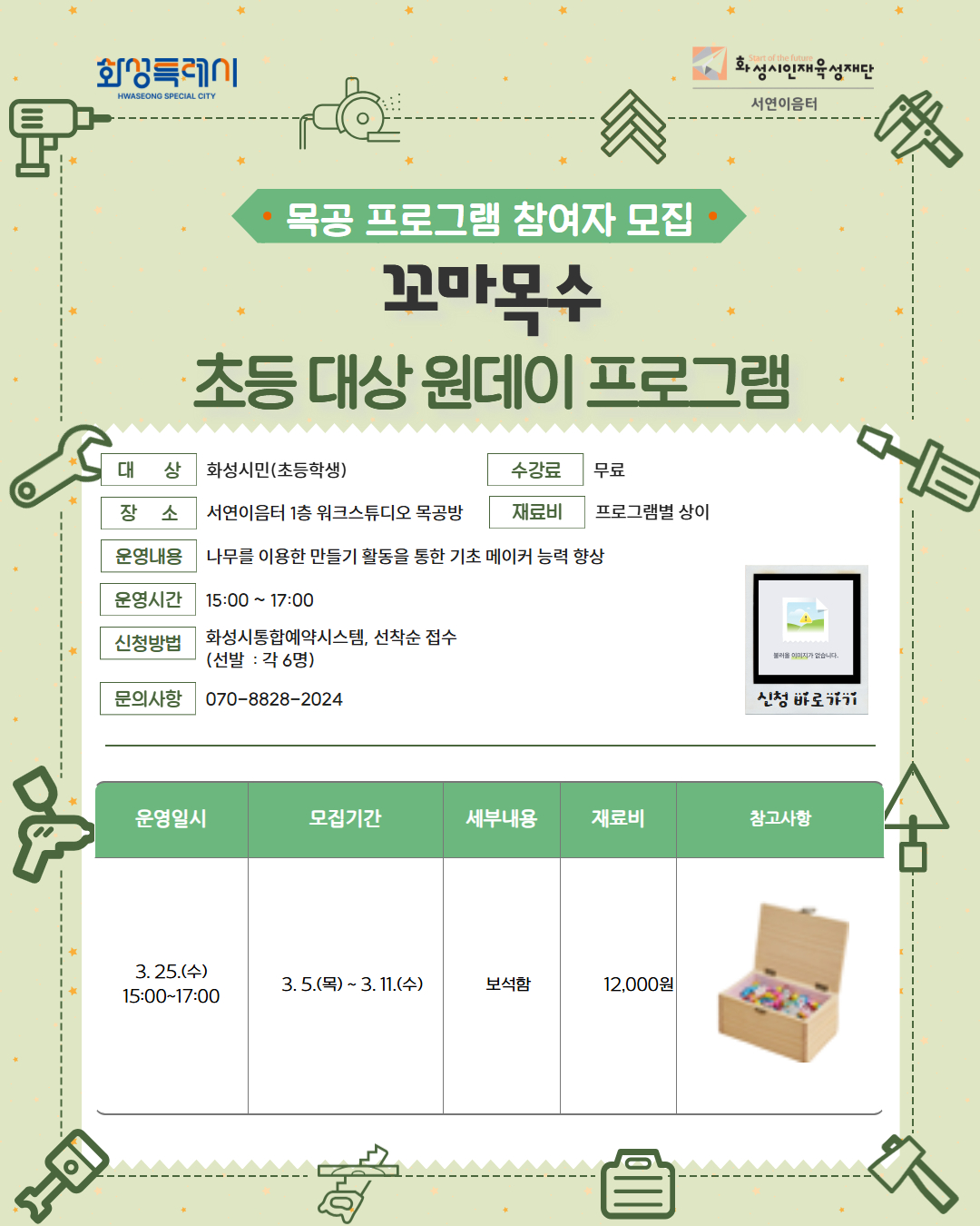 [서연이음터] 2026년 꼬마목수(보석함 만들기)
