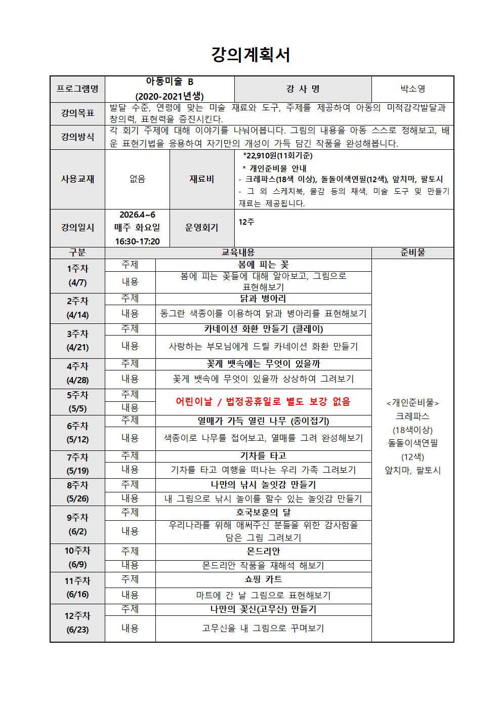 (산척동/아동) 아동미술B
