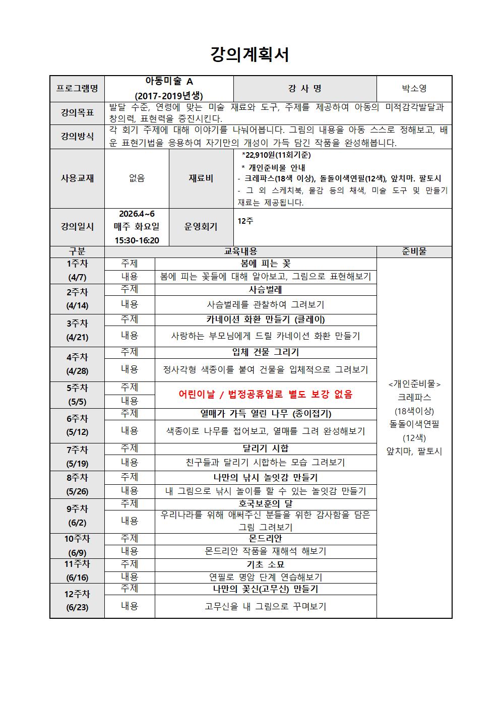 ** 아동 프로그램은 보호자가 아닌 아동의 아이디로 가입해주셔야 합니다.**