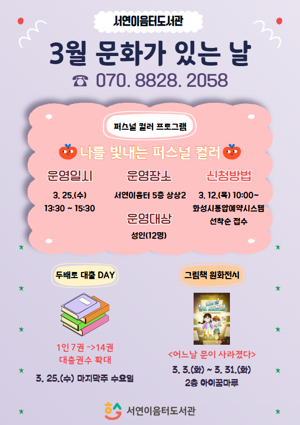 서연이음터도서관 3월 문화가 있는 날 프로그램 안내