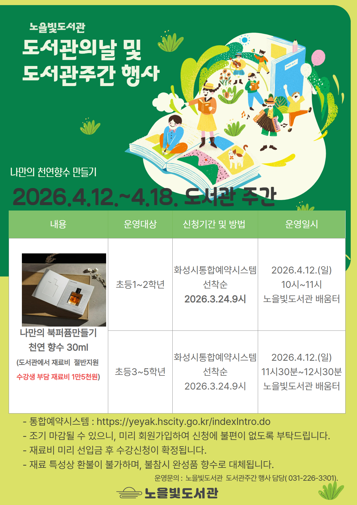 [노을빛도서관주간] 나만의 천연향수 북퍼퓸! 1,2학년 일일특강