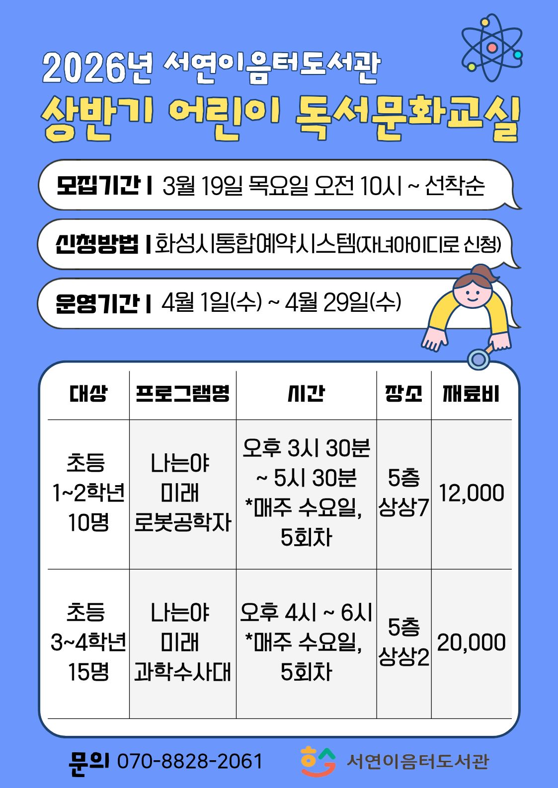 [서연이음터도서관] 2026년 상반기 어린이 독서문화교실