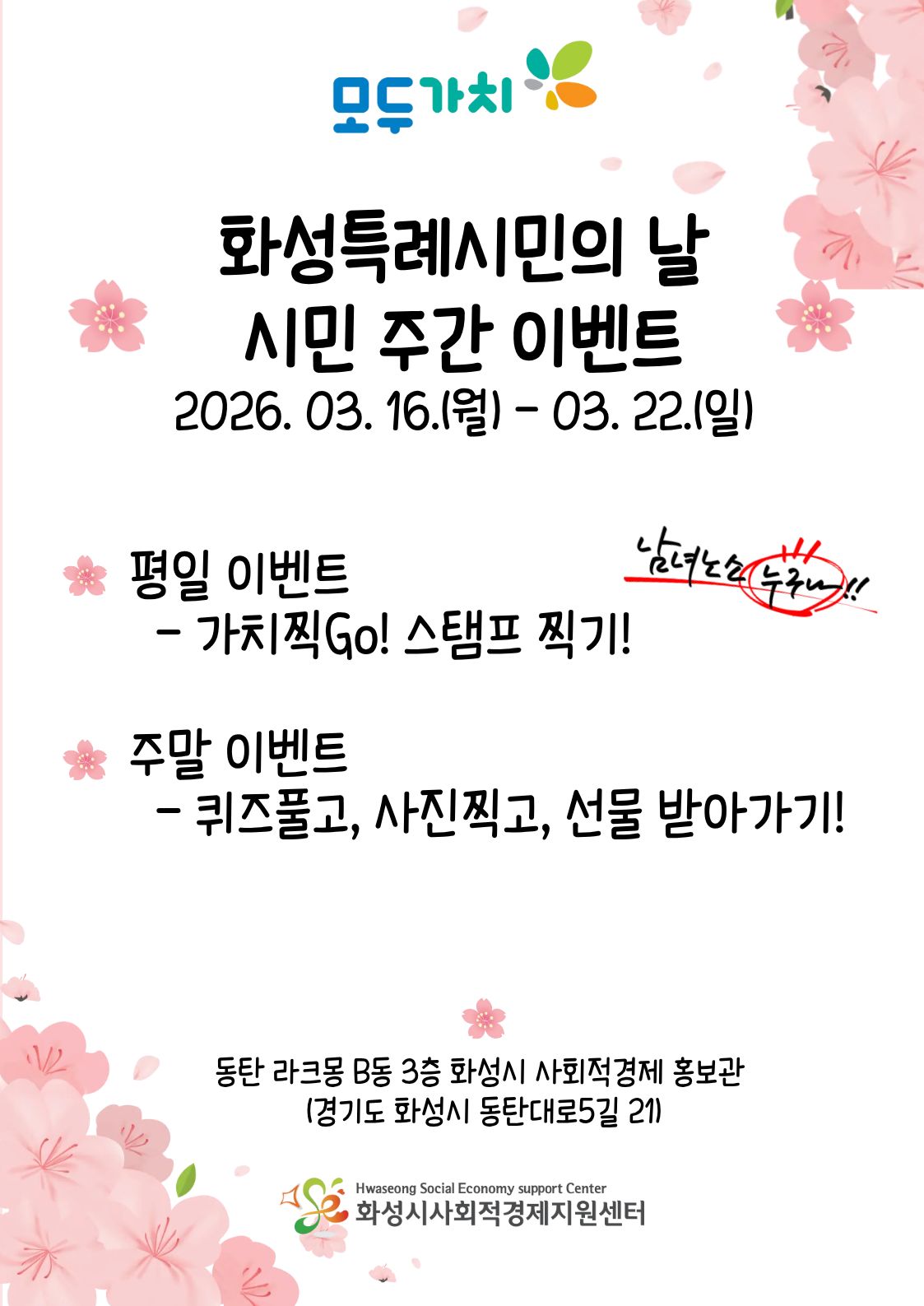 화성특례시민의 날을 맞아 시민 주간 이벤트를 운영합니다.