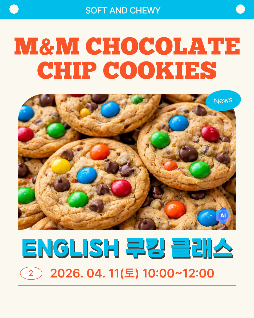 화성시생활문화센터 2회 [English 쿠킹 클래스] Soft and Chewy M&M Chocolate Chip Cookies