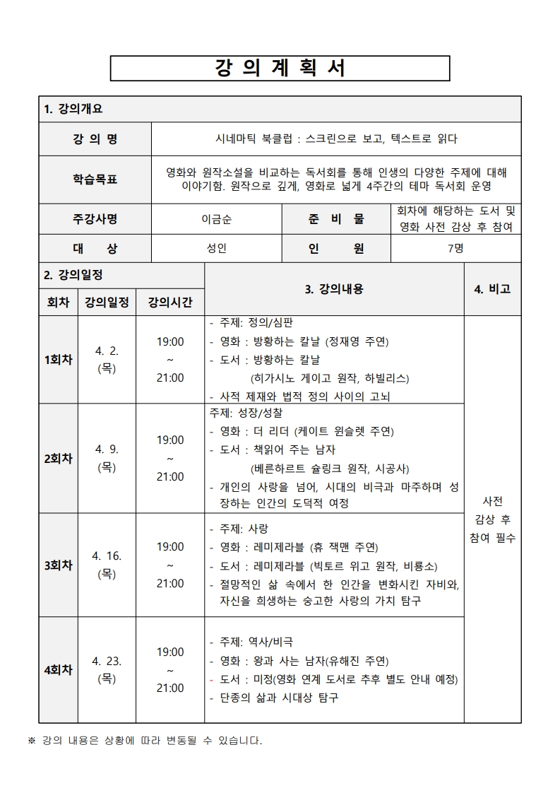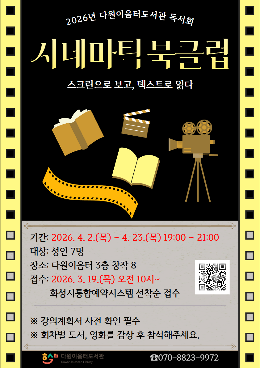 [다원이음터도서관] 상반기 독서회 <시네마틱 북클럽 : 스크린으로 보고, 텍스트로 읽다>
