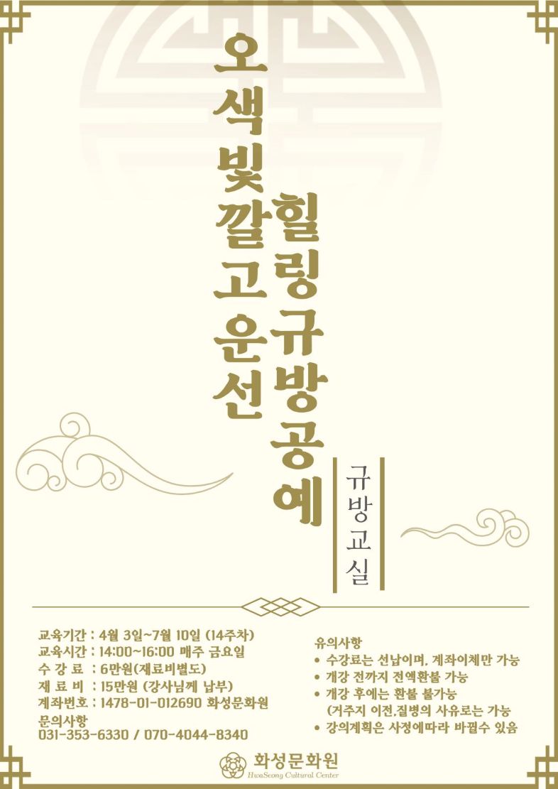 화성문화원 [오색빛깔 고운 선, 힐링 규방공예] 수강생 모집을 진행합니다.