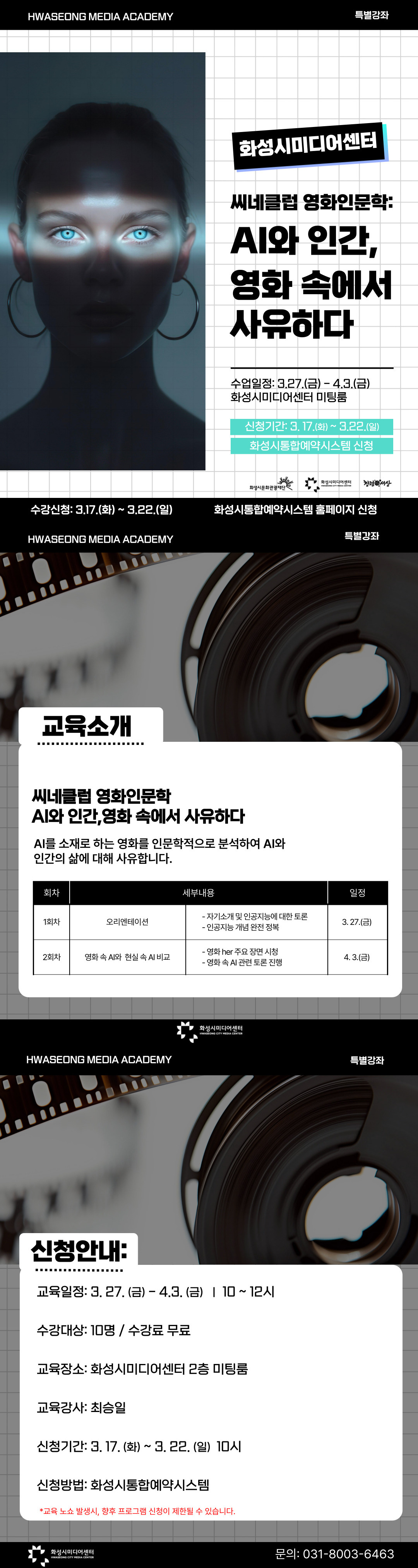 [화성시미디어센터] 씨네클럽 영화인문학: AI와 인간, 영화 속에서 사유하다