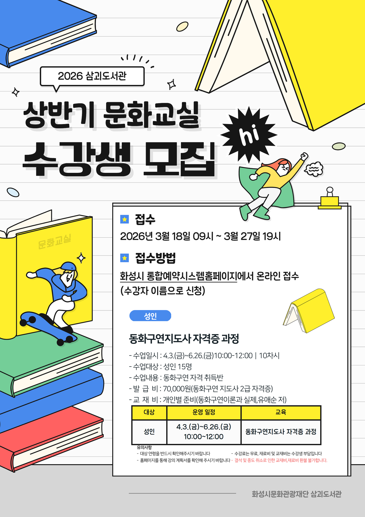 [삼괴도서관] 상반기 문화교실 <동화구연 자격증 취득반> (성인)