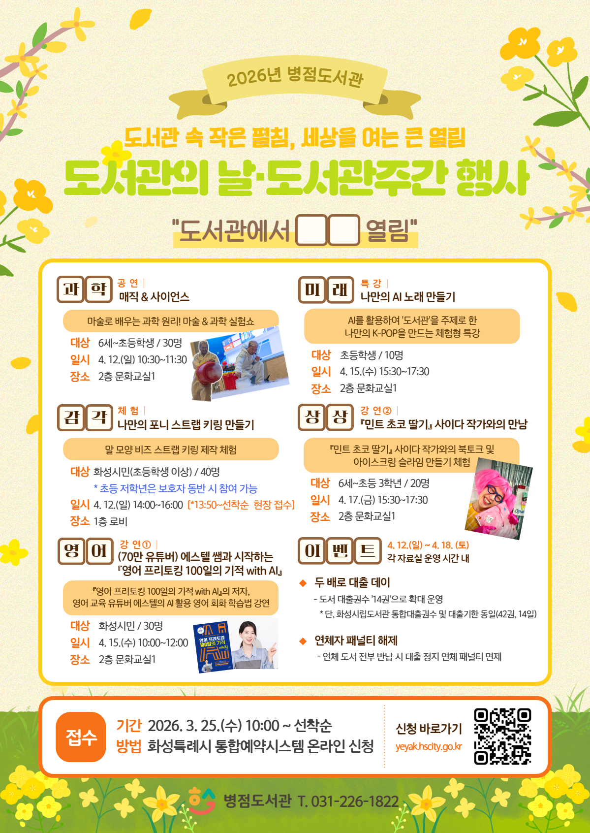 2026년 병점도서관 도서관의 날·도서관주간 ─ 도서관에서 [영어]가 열림