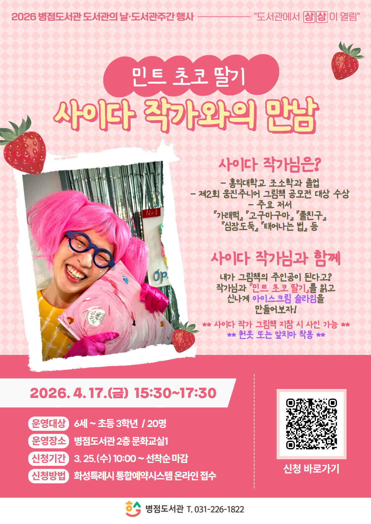 [병점도서관] 도서관의 날·도서관주간 <『민트 초코 딸기』 사이다 작가와의 만남 & 슬라임 만들기 체험> (6세~초등 3학년)