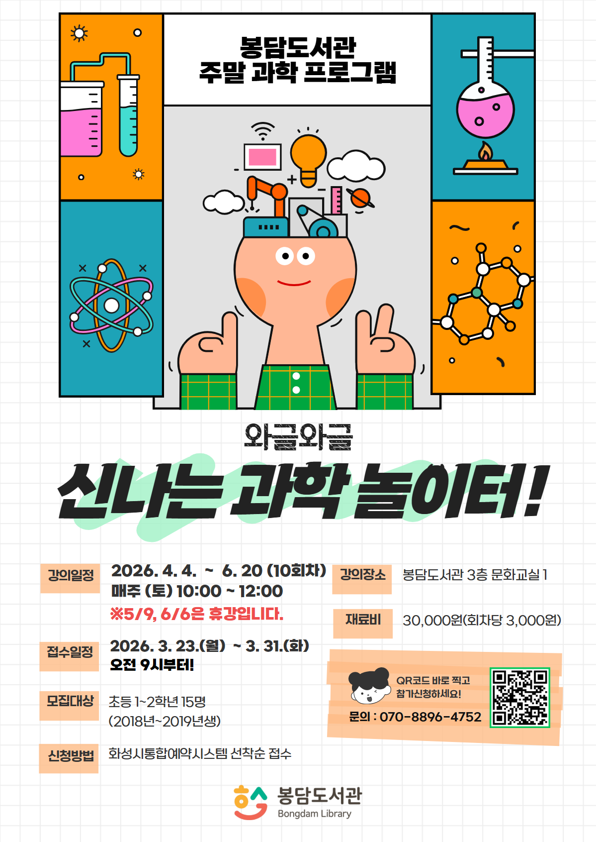 [봉담도서관] 주말 과학 프로그램 <와글와글 신나는 과학 놀이터!> (초등 1~2학년)