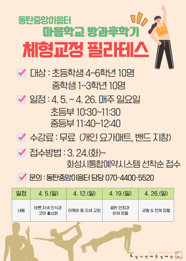 동탄중앙이음터 마을학교 방과후학기 <중등1~3학년> 체형 교정 필라테스