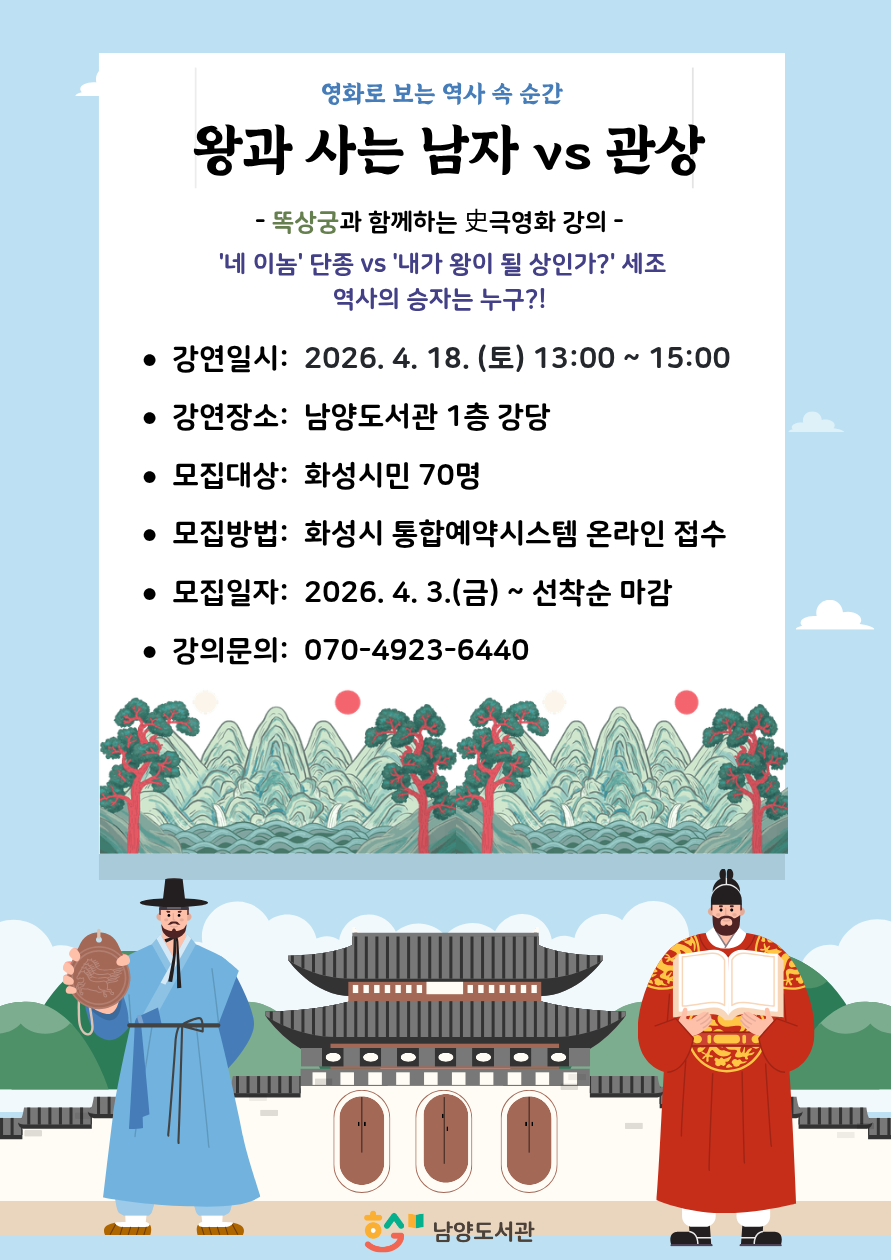 2026년 4월 도서관주간 역사 강연 <왕과 사는 남자vs관상>
