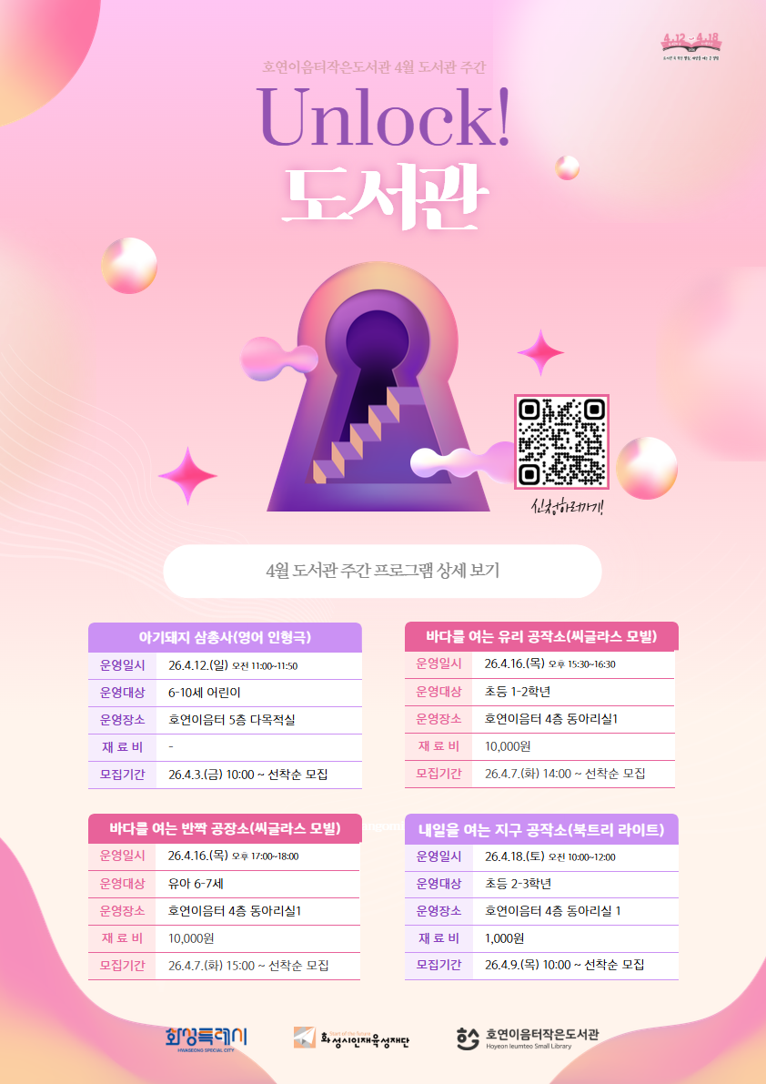 [호연이음터작은도서관] 4월 도서관주간 <아기돼지 삼총사 (영어 인형극)>(Unlock! 도서관)