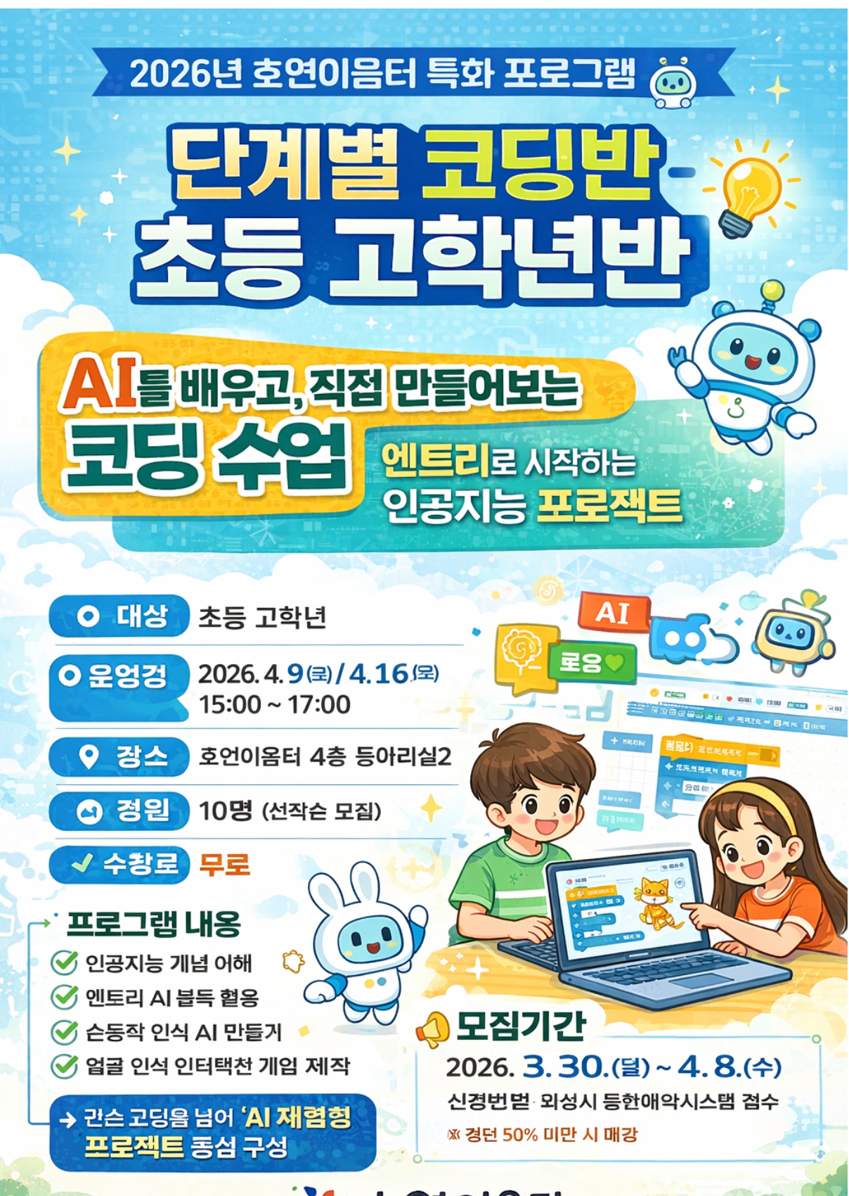 초등 고학년을 위한 AI 코딩 도전! 호연이음터 단계별 코딩반