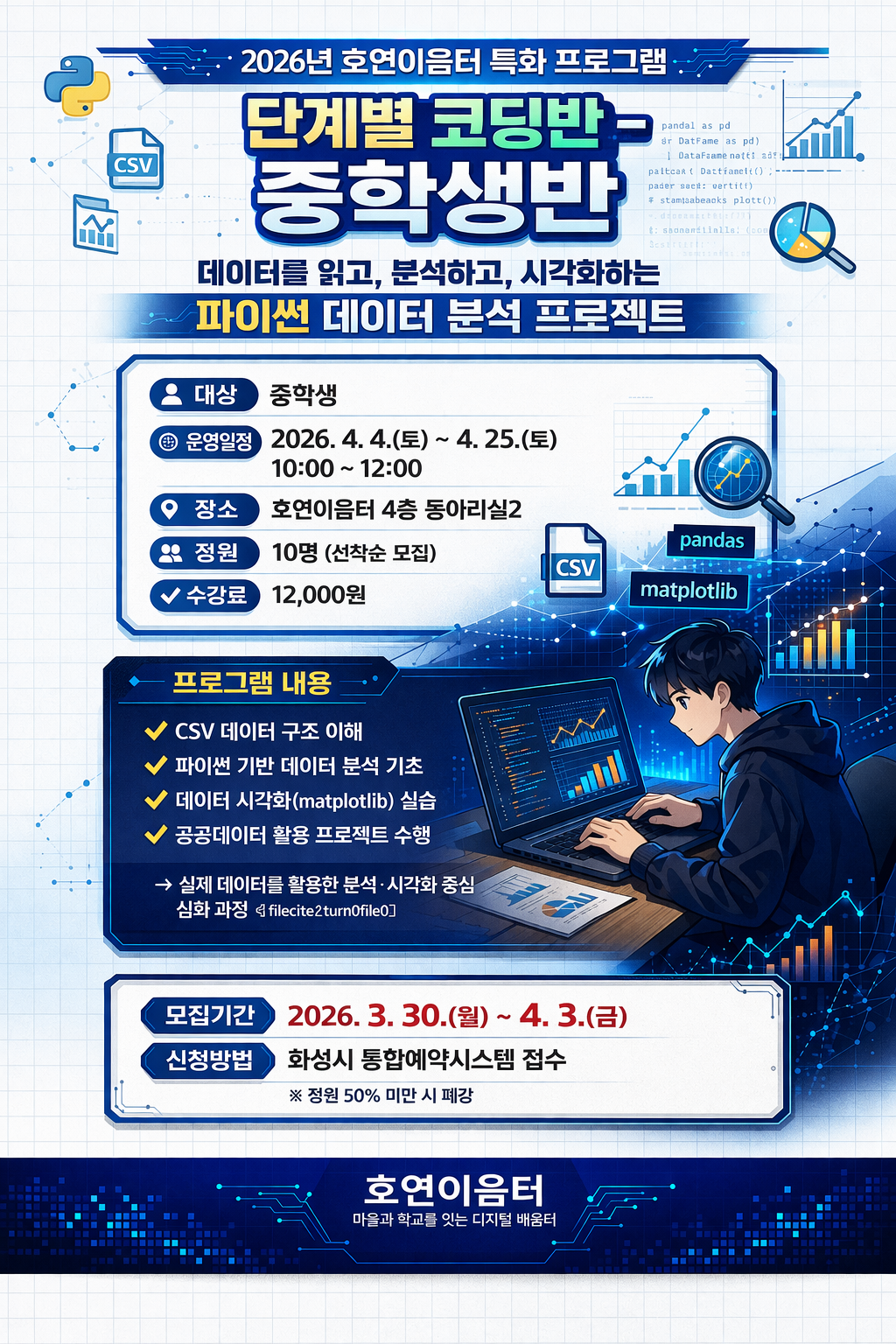 중학생을 위한 데이터 분석 코딩 도전! 호연이음터 단계별 코딩반
