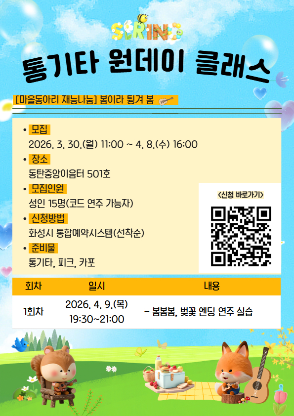 동탄중앙 마을동아리 재능나눔 [통기타 원데이 클래스_봄이라 튕겨 봄]