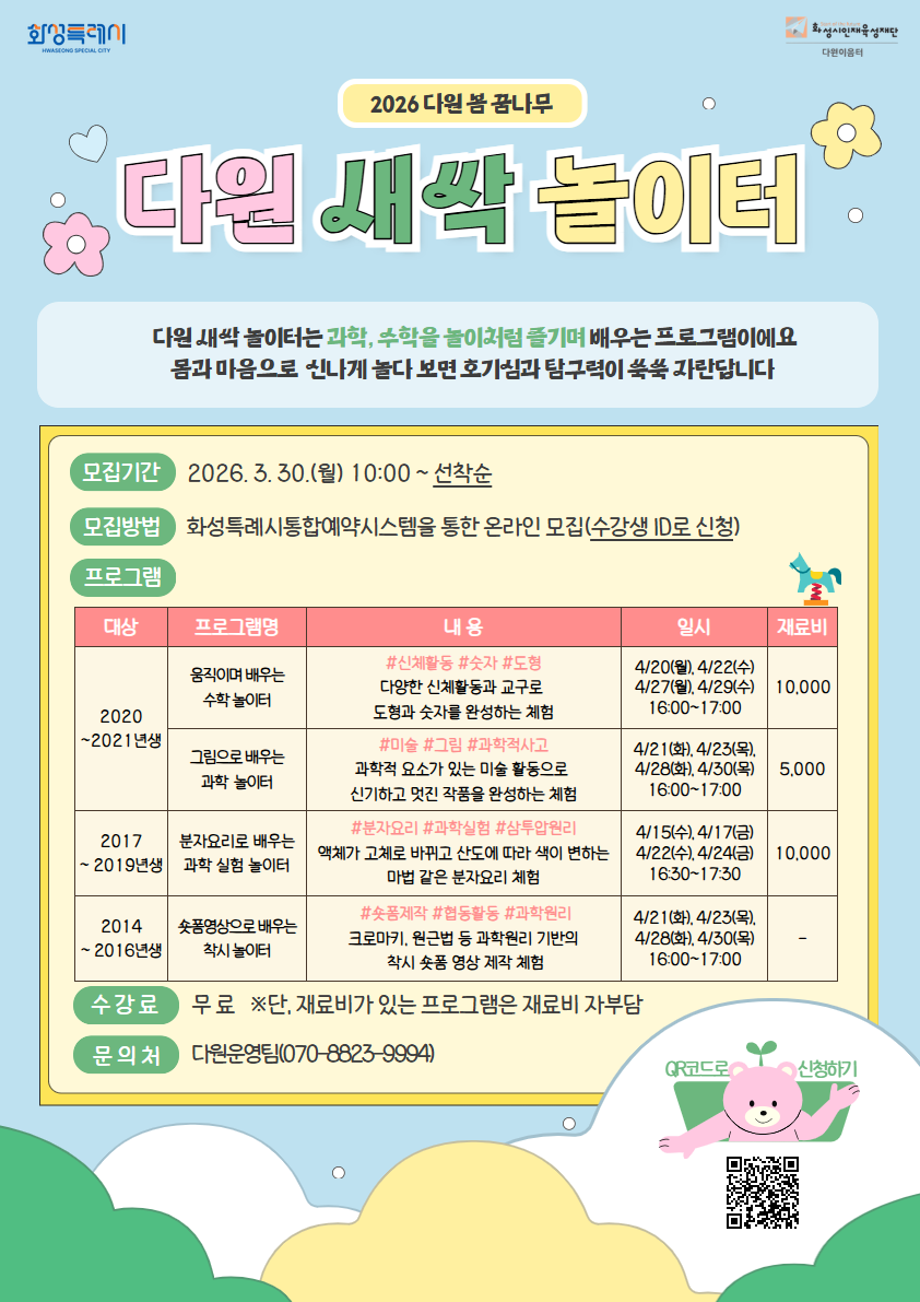 <2026년 다원 봄 꿈나무 '다원 새싹 놀이터' 공통 안내 사항>