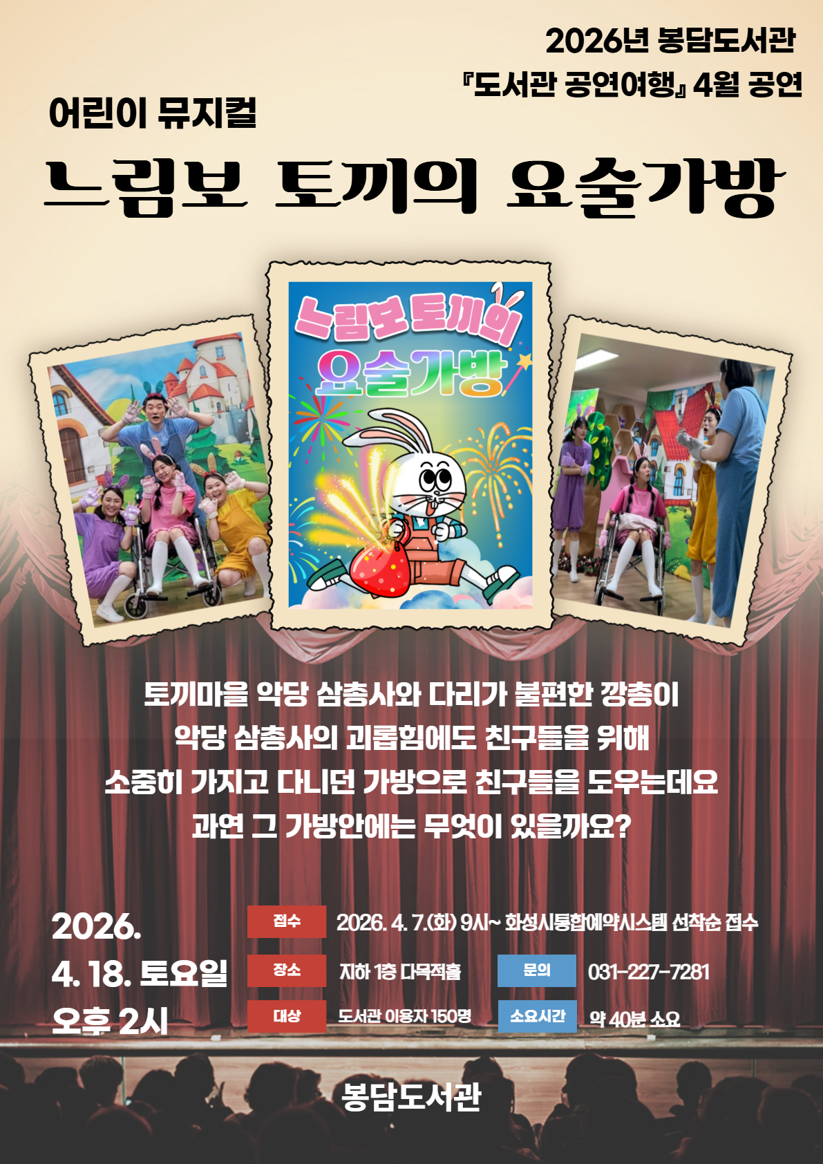 봉담도서관 「도서관 공연여행」 4월 공연, 뮤지컬 <느림보 토끼와 요술 가방>