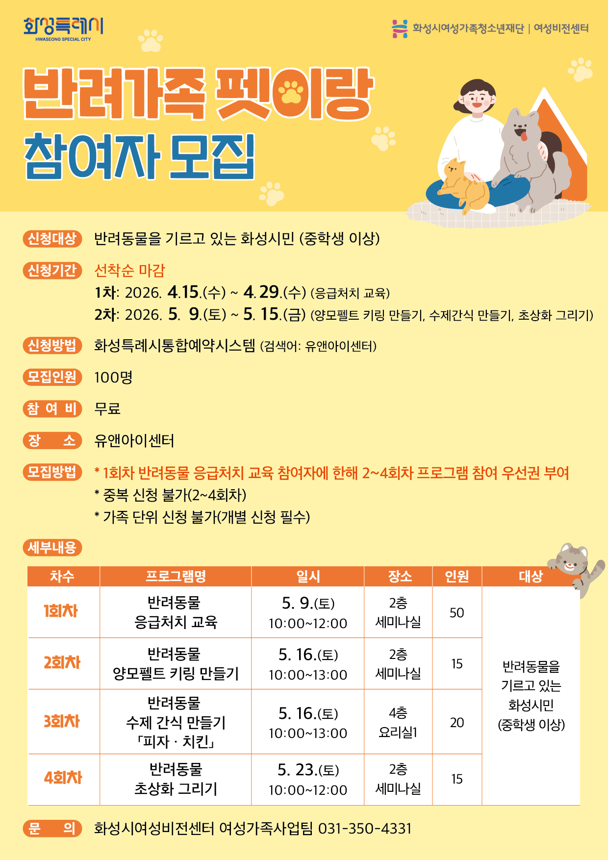 - 성인,청소년(반려동물을 기르고 있는 화성시민(중학생 이상))
