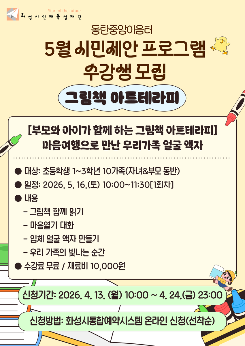 동탄중앙이음터 5월 시민제안[마음여행으로 만난 우리가족 얼굴 액자(그림책 아트테라피)]