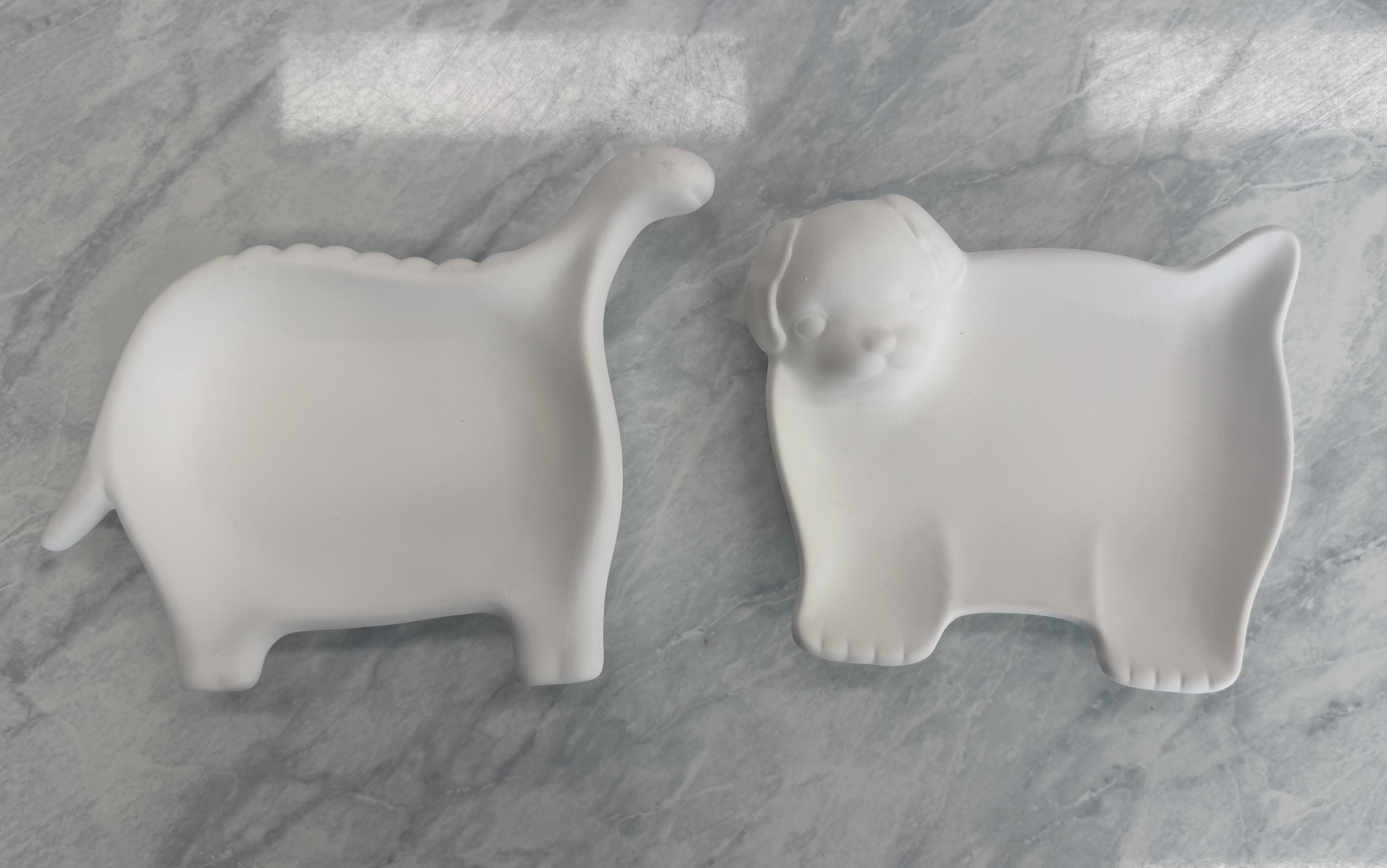 초벌 도자기 사이즈: 강아지-17.5cm(가로), 12.5cm(세로)/공룡-17.5cm(가로), 12cm(세로)