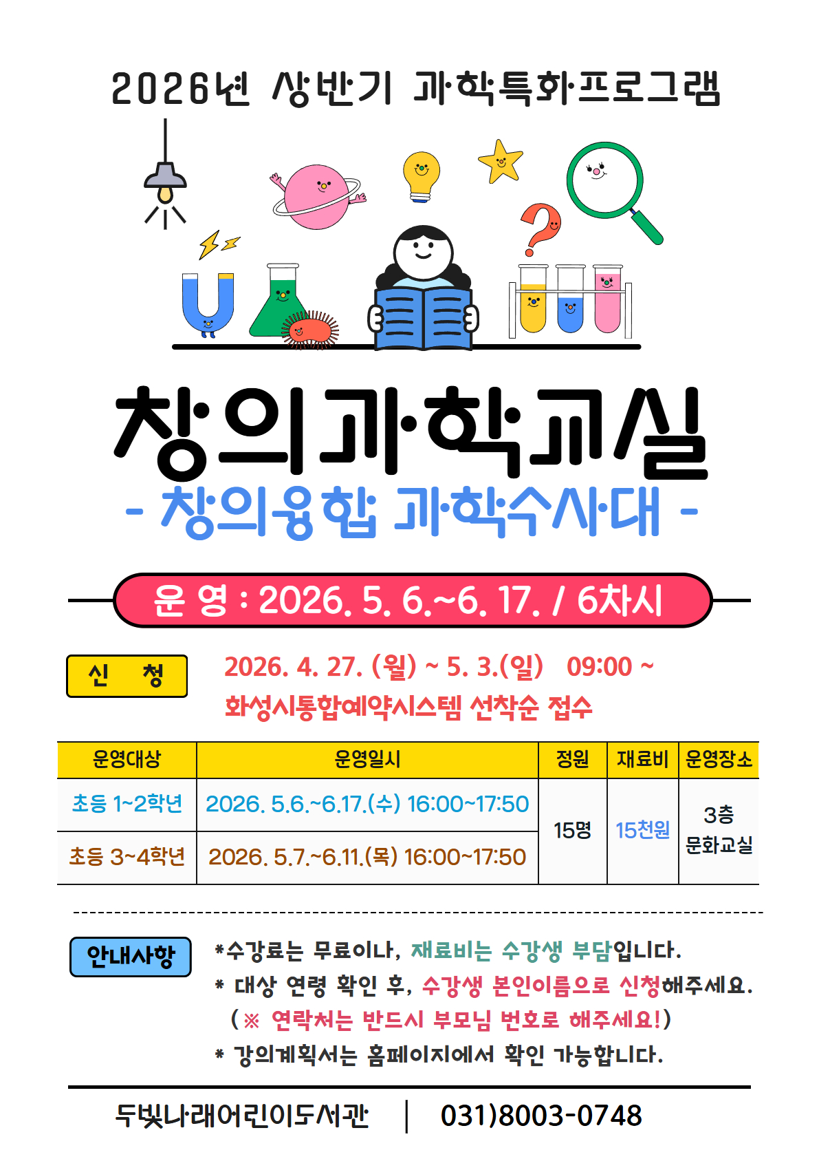 2026년 두빛나래어린이도서관 상반기 과학특화프로그램 수강생 모집 안내