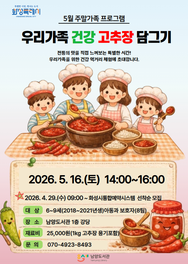 5월 주말가족프로그램 <우리가족 건강 고추장 담그기>