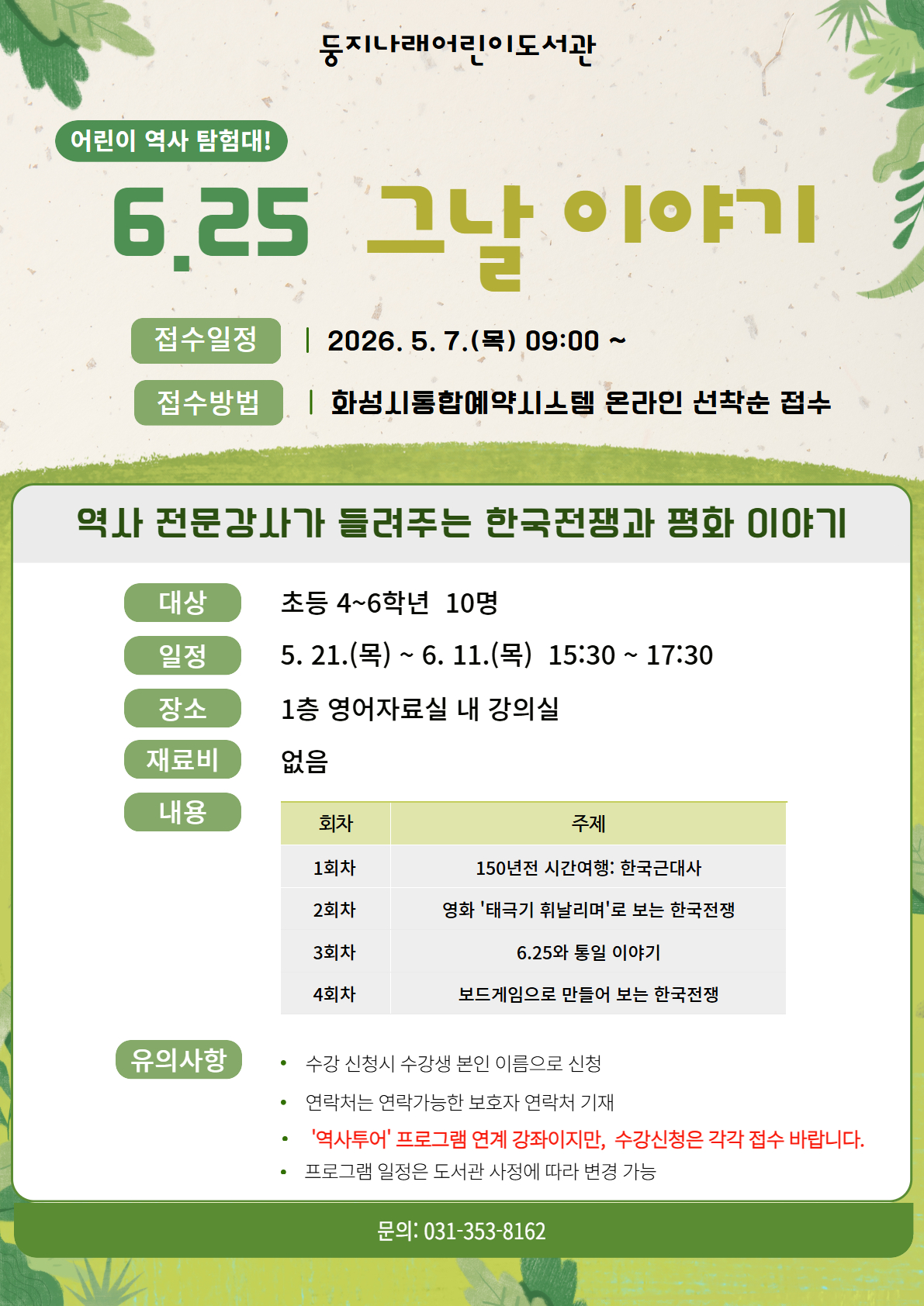 [둥지나래어린이도서관] 역사 프로그램 <6.25 그날 이야기> (초등 4~6학년)