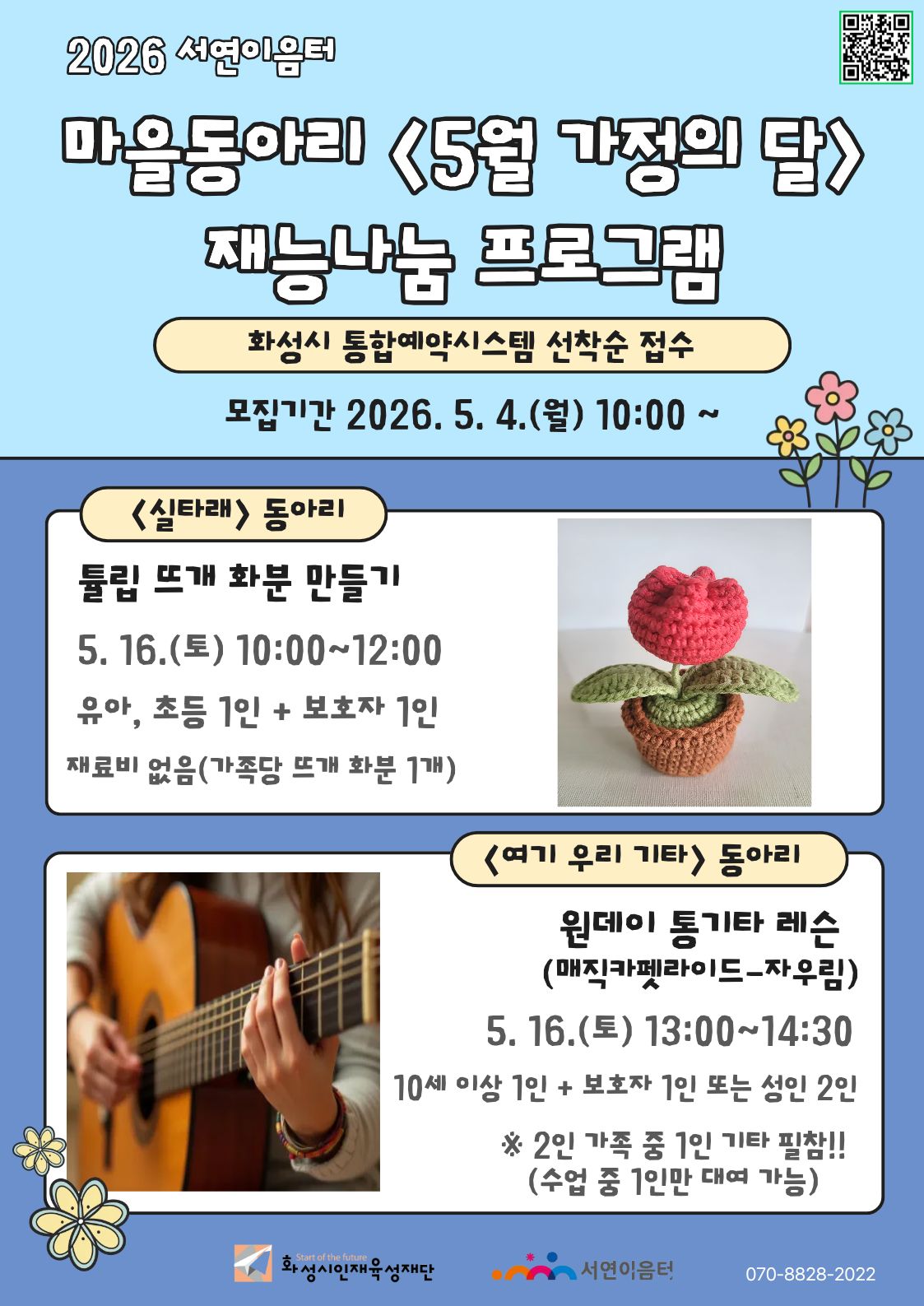 - 「튤립 뜨개 화분 만들기」 와 「원데이 통기타 레슨」 중복 신청 불가